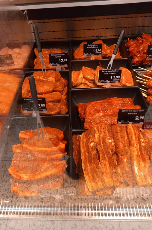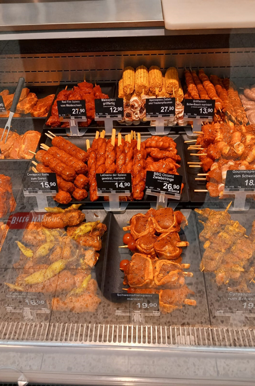 An unseren Frischebedientheken erwartet Sie eine breite Auswahl an köstlichen Leckerbissen für den Rost. Besonders beliebt sind unsere frischen Bratwürste Fränkischer Art, die mit ihrem traditionellen Geschmack überzeugen. Wer es etwas würziger mag, sollte unsere Merguez-Rinderbratwürste probieren – feurig und aromatisch. Auch Bratwürste mit Kalbfleisch, die besonders zart und mild sind, finden Sie bei uns in bester Qualität.