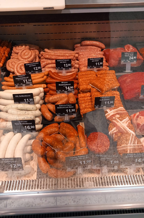 Vielfältige Bratwürste frisch an der Theke